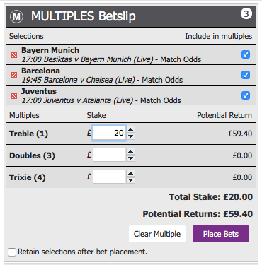 The treble is paying around 2.97 on BETDAQ MULTIPLES.